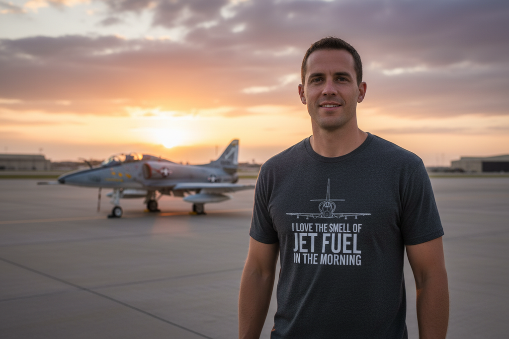 - Bold Jet Fuel Design - Eye-catching A-4 Skyhawk graphic with our signature "Jet Fuel in the Morning" design that sparks conversations