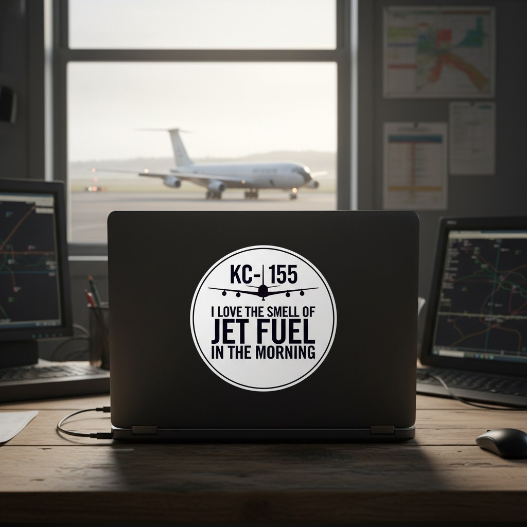 Who knows the smell of jet fuel better than a tanker crew? This is a variation of our classic Jet Fuel series stickers and shirts.